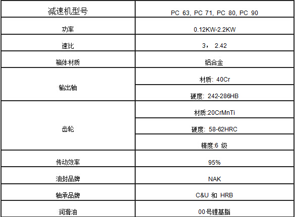 PC系列減速機是采用模塊化結(jié)構(gòu)設(shè)計的單級齒輪傳動減速機-即PC063型單級齒輪傳動減速機的傳動比i=3.0;PC071型單級齒輪傳動減速機的傳動比i=3.0;PC080型單級齒輪傳動減速機的傳動比i=3.0;PC090型單級齒輪傳動減速機的傳動i=2.42; PC系列減速機可以獨立供貨,也可以直接與NMRV系列蝸桿減速機組合。